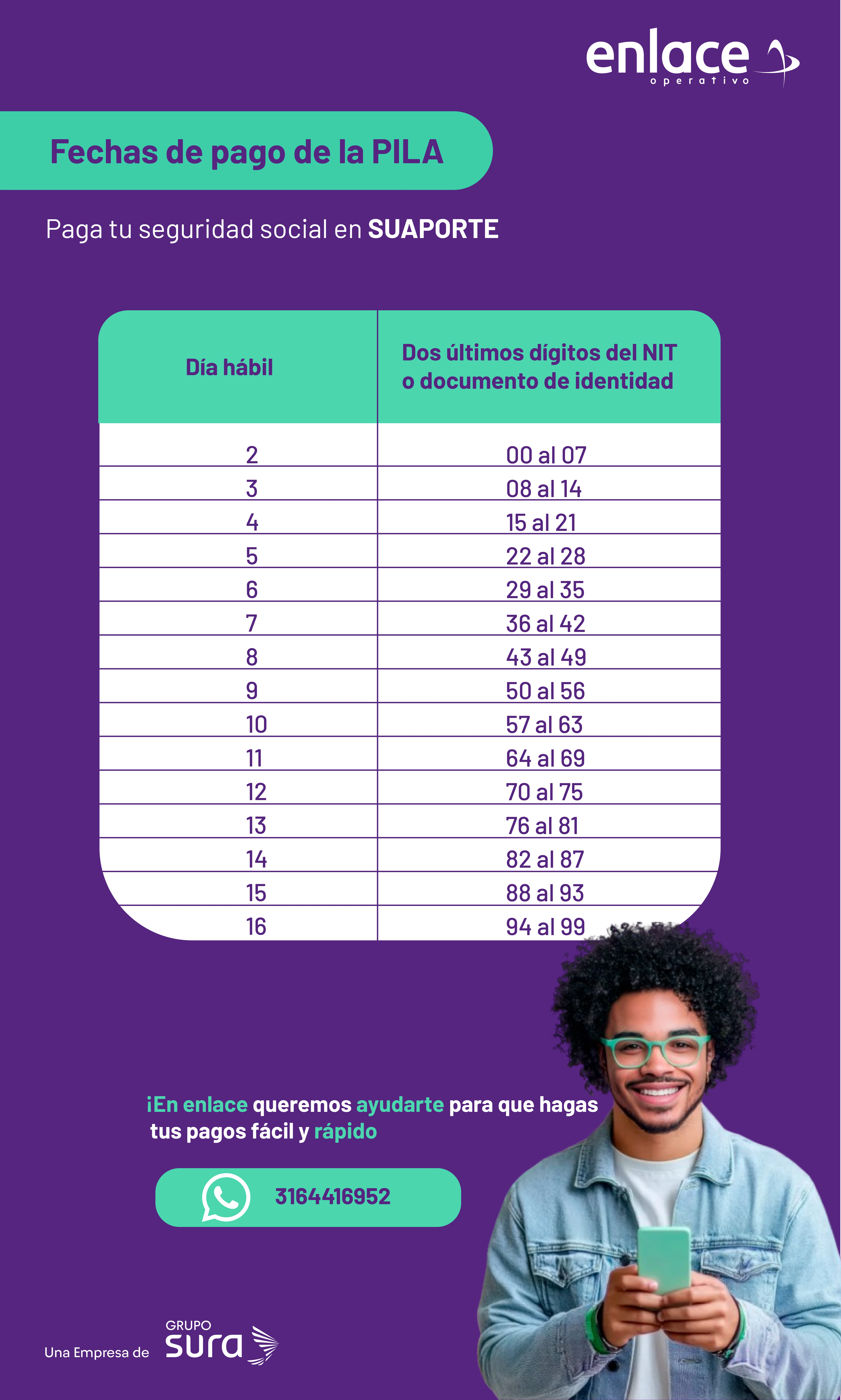 Recuerda que la fecha de pago de la PILA es según los últimos dígitos de tu NIT o tu documento de identidad.